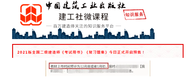 近日,中国建筑工业出版社某公众号推文,开始2021年二建教材预售: