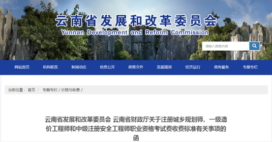 近日,云南省发展和改革委员会发布了关于一级造价工程师等职业资格考试费收费标准有关事项的函,其中明确云南一级造价工程师考试收费标准加收50元,以下是具体内容: