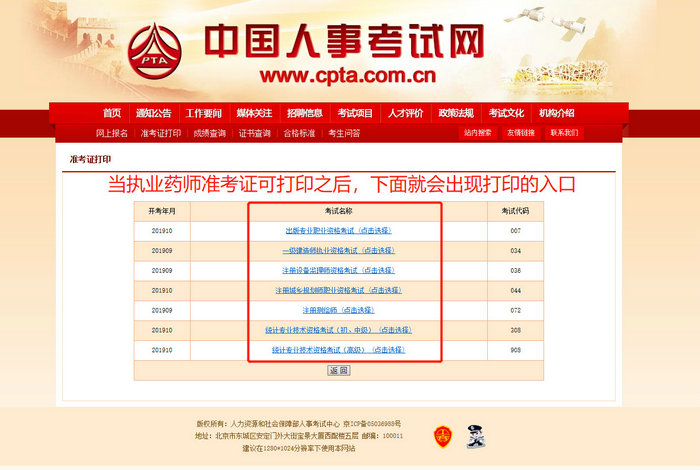 第二步:进入准考证 打印界面,选择“执业药师资格考试”
