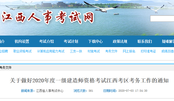江西省2020年一建考试安排