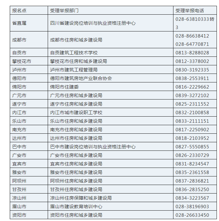 根据新型冠状病毒感染肺炎疫情防控要求,疫情防控期间仅受理电话举报,不受理现场举报,各报名点所在地受理举报部门及受理举报电话如下: