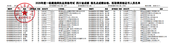 附件:2020年度一级建造师资格考试四川省成绩合格、拟取得资格证书人员名单