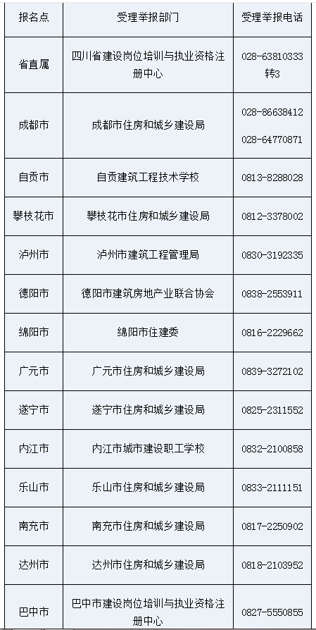 根据新型冠状病毒感染肺炎疫情防控要求,疫情防控期间仅受理电话举报,不受理现场举报,各报名点所在地受理举报部门及受理举报电话如下: