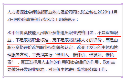 而是职业资格评价改为职业技能等级认定,发证主体由政府变为用人单位和相关社会组织,实行“谁用人、谁评价、谁发证、谁负责”的原则。