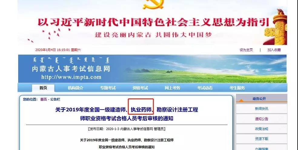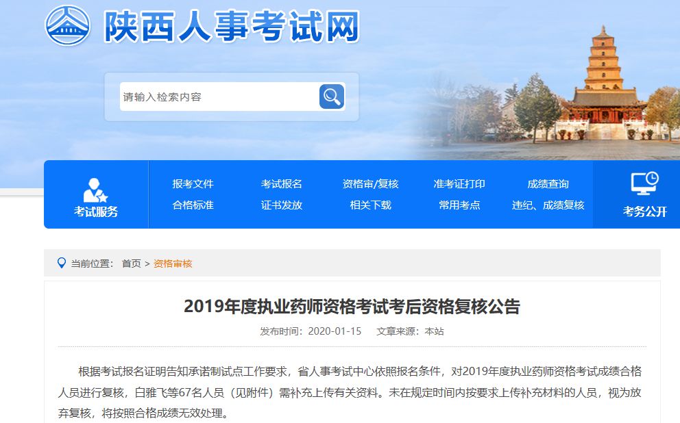 2020年1月8日,西藏自治区人事考试中心在微博上回复考生关于2019年执业药师考后审核时间的问题,表示需要复核的考生已打电话通知,且4科及格准备拿证的考生中未接到电话的就意味着审核通过。