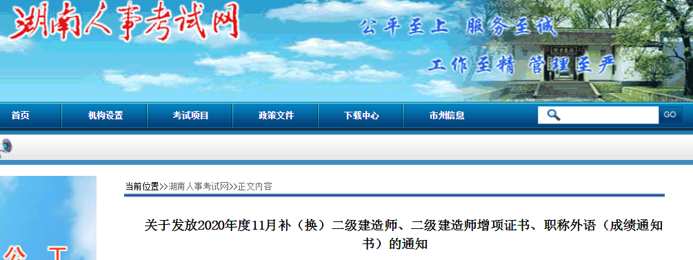 2020年度11月补(换)二级建造师、二级建造师增项证书、职称外语(成绩通知书)现已开始发放,请递交补办申请时选择现场领证的考生携本人身份证原件到湘府中路湖南人才市场三楼313办公室领取,联系电话:0731-84688383;请选择邮寄证书(成绩通知书)的考生注意查收EMS邮政特快专递。(2016年度及之后的二级建造师、2011年度之后的职称外语(成绩通知书)由考试报名所属市州寄发)