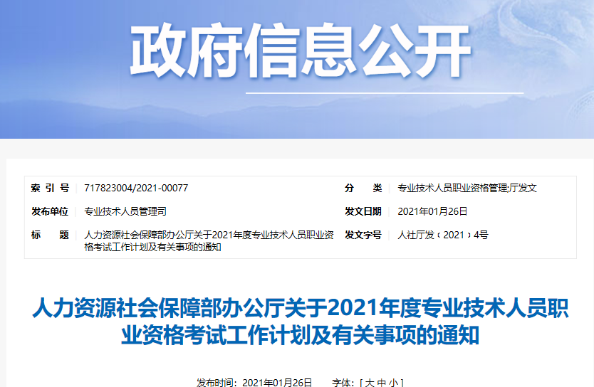 为做好专业技术人员职业资格考试规划和管理工作,便于广大专业技术人员参加职业资格考试,经商有关部门同意,现就2021年度专业技术人员职业资格考试计划及有关事项通知如下: