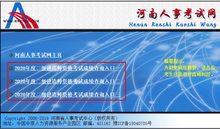 2020年河南二级建造师考试成绩查询官网:河南人事考试网