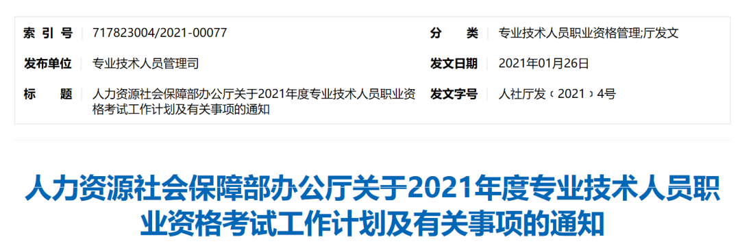 为做好专业技术人员职业资格考试规划和管理工作,便于广大专业技术人员参加职业资格考试,经商有关部门同意,现就2021年度专业技术人员职业资格考试计划及有关事项通知如下: