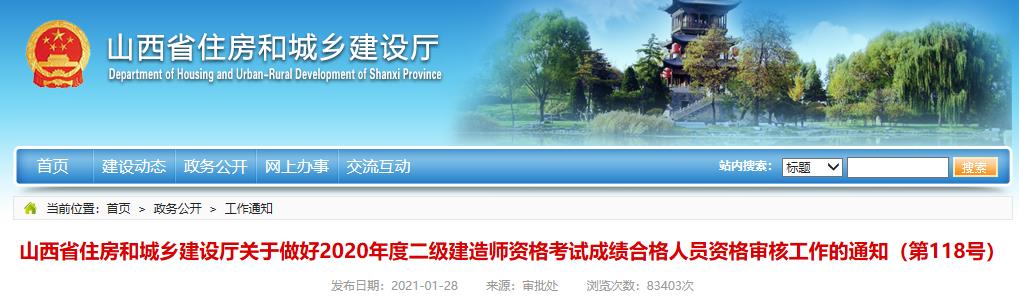 山西省住房和城乡建设厅关于做好2020年度二级建造师资格考试成绩合格人员资格审核工作的通知(第118号)