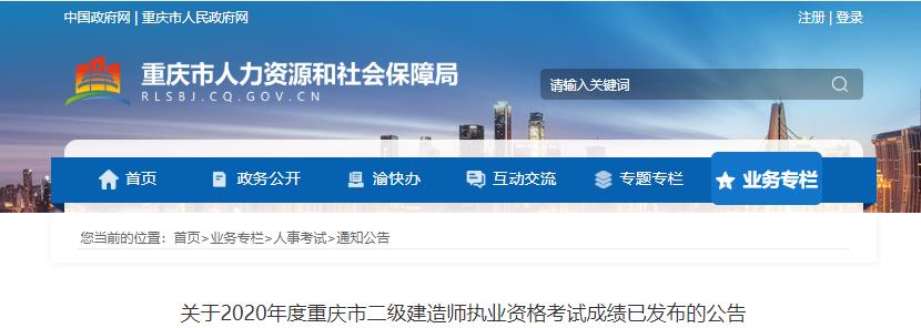 2020年重庆二级建造师考试成绩查询官网:重庆人力资源和社会保障网