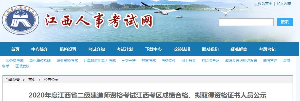 2020年江西二级建造师考试成绩合格名单已公布2021-02-20 09:40:30
