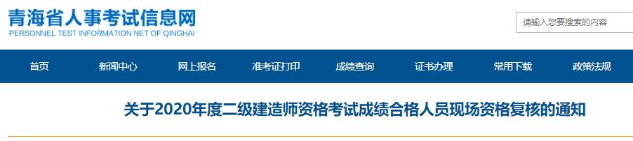 青海2020年二级建造师考试成绩合格人员现场资格复核的相关通知,复核时间为2021年3月2日--3月3日,以下是建培小编给大家带来的相关整理,供大家参考。
