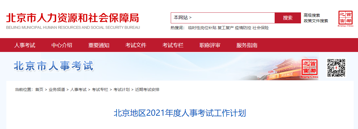 近日北京市人力资源和社会保障局发布北京地区2021年度人事考试工作计划