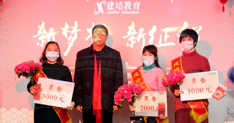 为表彰先进、激励士气,促进公司业绩增长,建培教育对2021年第三季度、第四季度业绩突出的个人进行大力表彰,由建培教育王副总为先进集体和个人颁奖。